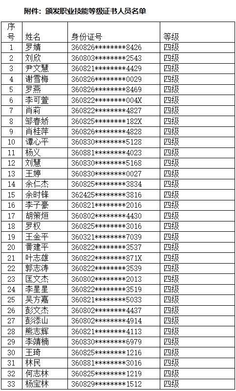 附件:頒發(fā)職業(yè)技能登記證書人員名單