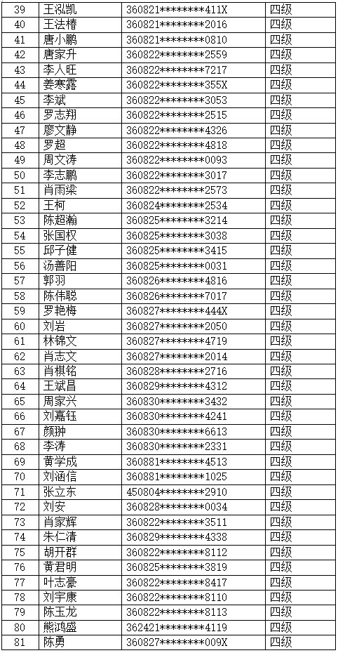 根據(jù)《江西省人力資源和社會保障廳關(guān)于遴選備案職業(yè)技能等級認(rèn)定社會培訓(xùn)評價組織的通知》(贛人社字(2020)302號)、(贛人社字(2022)128號)文件要求。按照《關(guān)于開展“互聯(lián)網(wǎng)+職業(yè)技能等級認(rèn)定”試點工作的通知》(贛人社字(2020)397號)精神。我校于2024年11月25日開展了計算機(jī)及外部設(shè)備裝配調(diào)試員(計算機(jī)整機(jī)裝配調(diào)試員)等級認(rèn)定,共140人(四級),通過認(rèn)定考核128人?,F(xiàn)對認(rèn)定考核合格人員進(jìn)行公示(名單附后)。