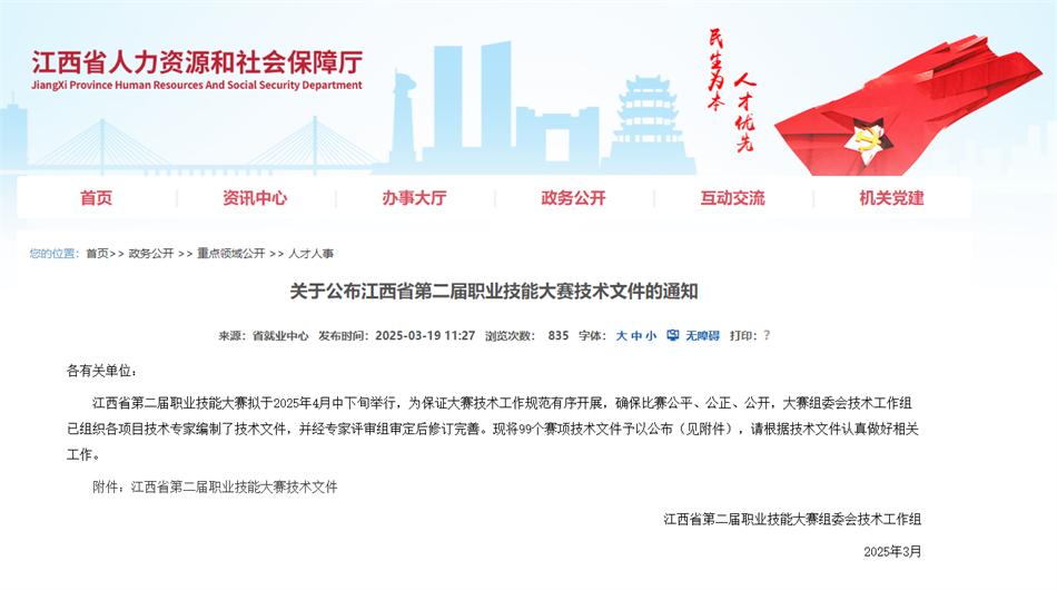 為深入貫徹落實(shí)職業(yè)技能競(jìng)賽體系的建設(shè)要求,進(jìn)一步引導(dǎo)廣大青年走技能成才、技能報(bào)國之路,江西省第二屆職業(yè)技能大賽將于4月26日至30日在南昌隆重舉行。此次大賽以“技能照亮前程—技興贛鄱”為主題,是全省技能人才的一次盛會(huì),也是對(duì)我省職業(yè)技能教育成果的一次全面檢閱。
