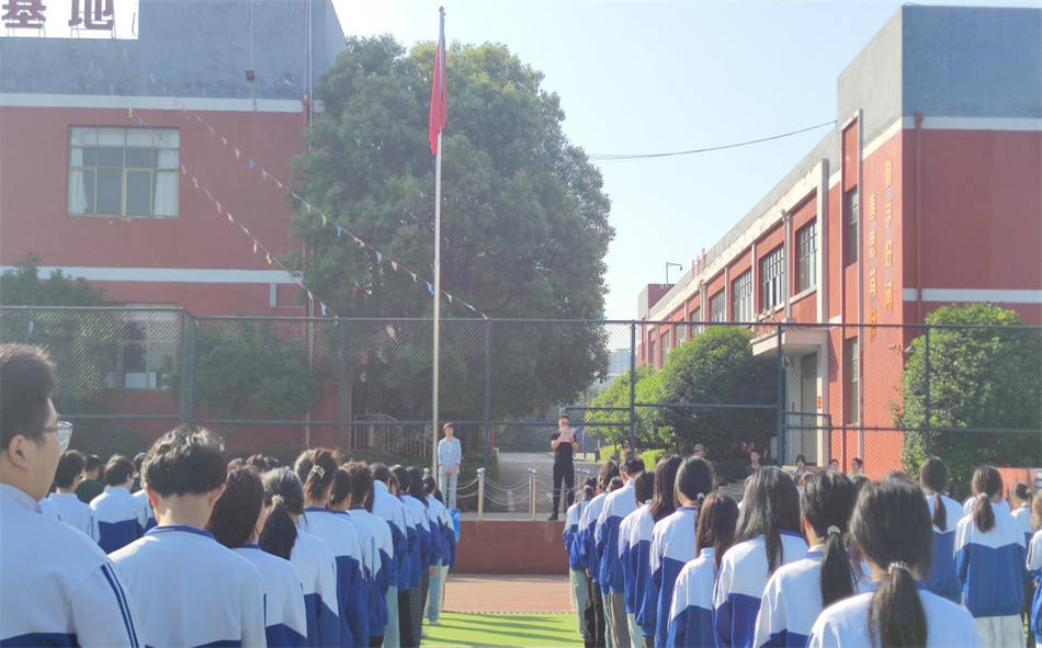 隨著激昂的入場音樂響起,師生們迅速有序地集合在操場。升旗儀式正式開始,護(hù)旗手們精神抖擻、步伐整齊,護(hù)衛(wèi)著五星紅旗邁向升旗臺(tái)。當(dāng)《義勇軍進(jìn)行曲》奏響,五星紅旗冉冉升起,全體師生莊嚴(yán)肅立,行注目禮,齊聲高唱國歌,歌聲嘹亮,愛國之情在每個(gè)人心中激蕩。