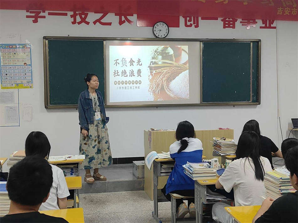 為弘揚(yáng)中華民族勤儉節(jié)約的傳統(tǒng)美德,增強(qiáng)學(xué)生的節(jié)約意識(shí),5月26日,吉安市理工技工學(xué)校學(xué)工處組織全校各班級(jí)開展了“不負(fù)食光,杜絕浪費(fèi)”主題班會(huì)活動(dòng),倡導(dǎo)全體同學(xué)從自身做起,珍惜糧食,杜絕浪費(fèi),共建文明校園。