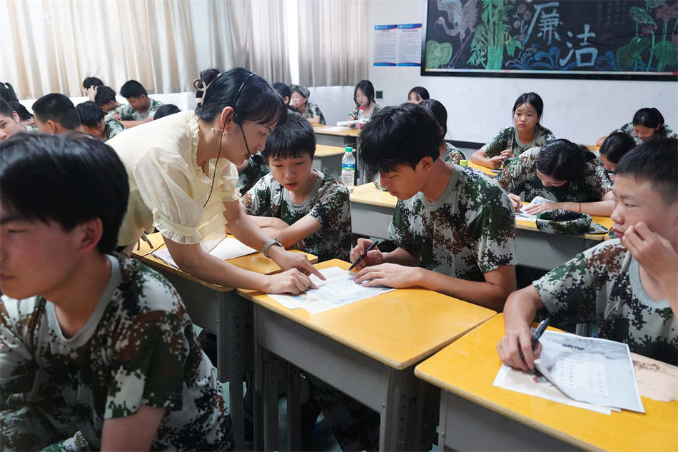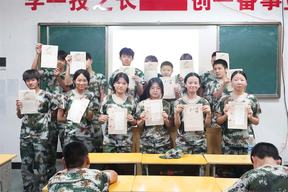 訓(xùn)練場(chǎng)上,教官正逐個(gè)糾正學(xué)員的敬禮手勢(shì):“手腕再平一點(diǎn),目光看向前方!”課間休息時(shí),他卻微笑著遞上礦泉水:“今天比昨天進(jìn)步多了,繼續(xù)保持!”教室里,書(shū)法課的老師正俯身查看學(xué)生臨寫(xiě)的硬筆楷書(shū)作業(yè),提出建議:“注意橫畫(huà)起筆要像刀刻般利落,收尾時(shí)筆尖順勢(shì)輕提。”這種嚴(yán)慈相濟(jì)的指導(dǎo),讓學(xué)員們?cè)谶m應(yīng)節(jié)奏的同時(shí),也感受到成長(zhǎng)的溫度。