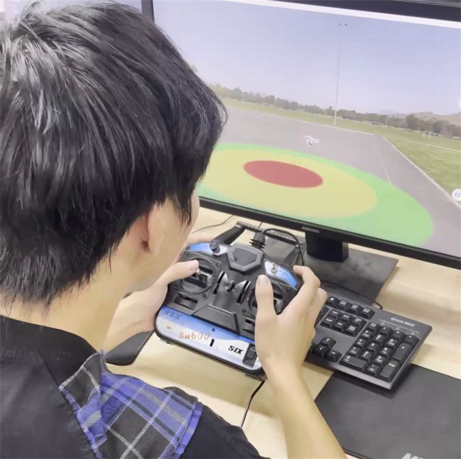 秦黎佩老師介紹到,室內(nèi)模擬飛行系統(tǒng)是理論教學(xué)與實(shí)踐操作的“橋梁”。系統(tǒng)通過(guò)高精度物理引擎,1:1還原真實(shí)飛行環(huán)境的氣流變化、無(wú)人機(jī)動(dòng)力響應(yīng)等細(xì)節(jié),幫助學(xué)生提前掌握遙控器操作邏輯、飛行軌跡規(guī)劃及突發(fā)故障應(yīng)急處理能力。“模擬調(diào)試不僅大幅降低了教學(xué)成本——避免了實(shí)機(jī)損耗與場(chǎng)地限制,更重要的是,它讓學(xué)生在‘試錯(cuò)’中建立起操作自信,為后續(xù)實(shí)飛奠定了扎實(shí)基礎(chǔ)。”。
