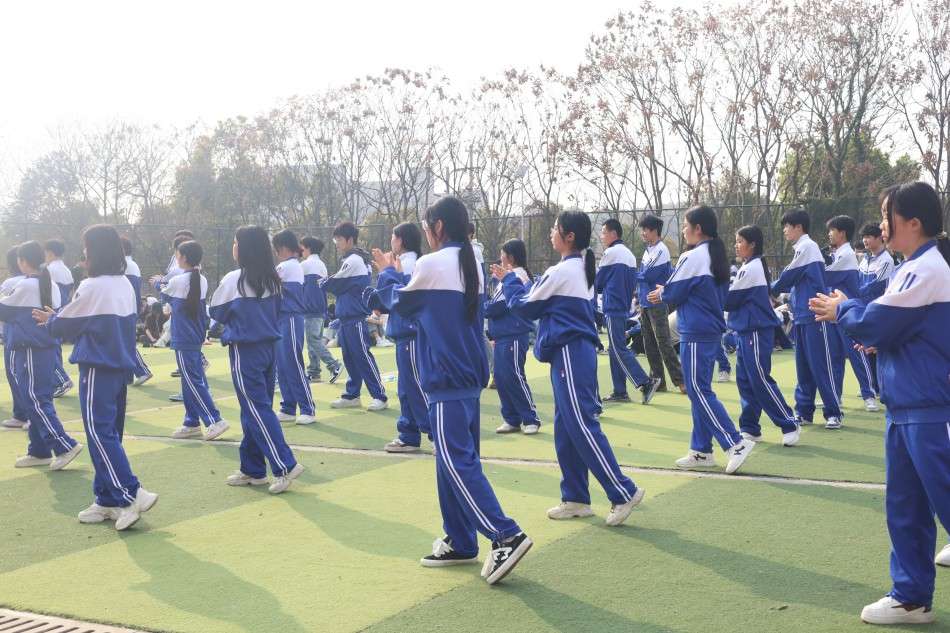 各班級方陣依照賽前抽簽順序依次登場。足球場上,同學(xué)們身著統(tǒng)一的校服,步伐整齊劃一。從預(yù)備節(jié)到整理運動,每一個動作都張弛有度,每一次伸展都充滿力量。同學(xué)們以飽滿的熱情、規(guī)范的動作和昂揚的斗志,展現(xiàn)了理工學(xué)子積極向上的精神面貌。