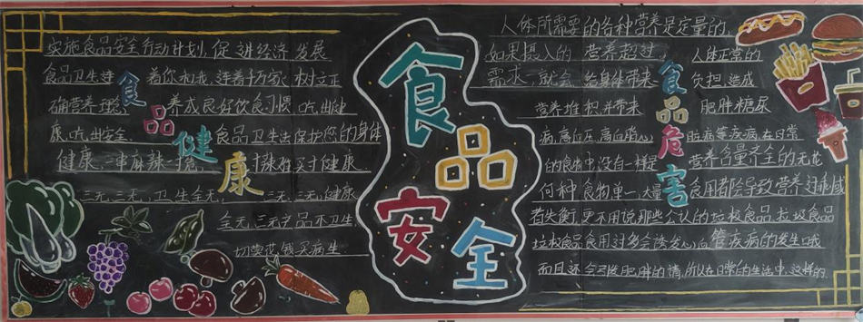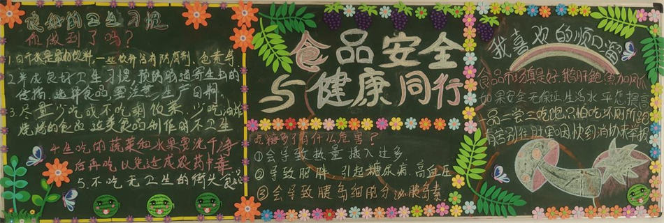 全國食品安全宣傳周活動,食品安全關乎每個人的健康,學生們以我學我寫,我能我畫的形式,一起制作了簡單又漂亮的食品安全宣傳周黑板報,學生們用心制作的食品安全黑板報,都寄托了學生呼吁食品安全的心聲,倡導食品安全,給我們一個健康的身體的心愿。