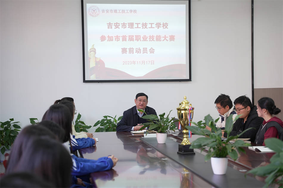 2023年吉安市第一屆職業(yè)技能大賽即將拉開序幕,為了迎接比賽的到來,做好賽前準(zhǔn)備工作,11月17日上午,吉安市理工技工學(xué)校在綜合樓會議室召開技能大賽賽前動員會,以表斗志,以壯士氣。執(zhí)行校長汪榮華、參賽項(xiàng)目領(lǐng)隊(duì)、指導(dǎo)老師及選手、教務(wù)處相關(guān)負(fù)責(zé)人參加了本次會議。