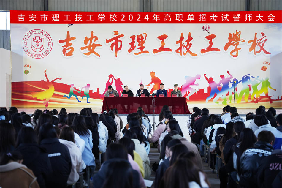 少年應(yīng)有鴻鵠志,當(dāng)騎駿馬踏平川。2024年3月14日,吉安市理工技工學(xué)校高職單招考試誓師大會在校文體中心隆重舉行,21級全體師生齊聚一堂,共同吹響迎戰(zhàn)單招考試“沖鋒號”。大會由黨政辦李世序主任主持,執(zhí)行校長汪榮華、學(xué)工處主任洪治開、教務(wù)處負(fù)責(zé)人江旺慶、學(xué)工處副主任唐永杰等出席。