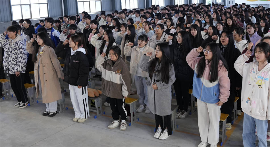 同學(xué)們的錚錚誓言在校園中縈繞不絕,每一聲吶喊都表現(xiàn)出同學(xué)們沖刺考試的堅定信心和必勝信念。