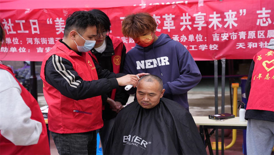 為弘揚(yáng)雷鋒志愿服務(wù)精神,傳遞一份溫暖,一份關(guān)愛(ài),進(jìn)一步為社區(qū)老年人提供服務(wù)。近日上午,吉安市理工技工學(xué)校聯(lián)合河?xùn)|街道天和社區(qū)開(kāi)展了以“義剪進(jìn)社區(qū),便民服務(wù)暖人心”為主題的志愿服務(wù)活動(dòng)。