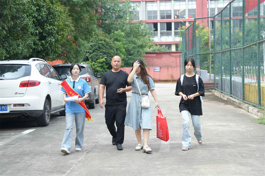 進(jìn)入校園后,引導(dǎo)學(xué)生家長前往綜合樓。