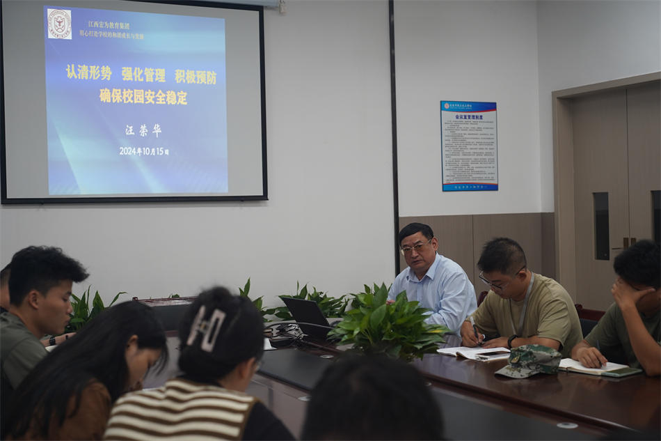 在當(dāng)前復(fù)雜多變的社會(huì)環(huán)境中,校園安全問題日益受到重視。為進(jìn)一步強(qiáng)化校園安全管理機(jī)制,提升班主任隊(duì)伍及校園安保人員的安全責(zé)任意識及應(yīng)急處理能力,2024年10月15日下午學(xué)校特別組織了一場校園安全工作培訓(xùn)會(huì)。此次培訓(xùn)會(huì)緊密圍繞“認(rèn)清形勢、強(qiáng)化管理、積極預(yù)防、確保校園安全穩(wěn)定”的核心議題展開,由執(zhí)行校長汪榮華主講,全體班主任、教官、宿管積極參與,共同致力于構(gòu)建平安和諧的校園環(huán)境。