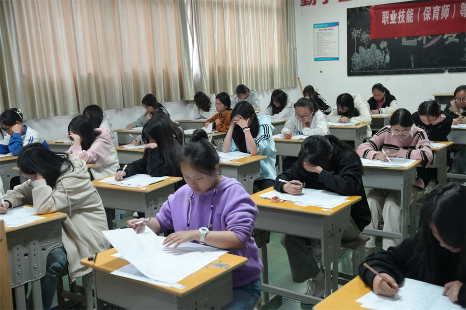 在理論考試環(huán)節(jié),考生們認真審題,仔細作答,每個人都全力以赴,展現(xiàn)出對專業(yè)知識的深入理解和掌握??荚噧?nèi)容涉及幼兒教育的心理學(xué)、教育學(xué)原理,護理學(xué)的基礎(chǔ)知識和臨床操作要點,以及美容學(xué)的美學(xué)理論和皮膚護理技巧等,全面而深入。